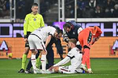 TVRG Atalanta vs Bologna nella foto Jens Odgaard (Bologna) infortunato Bergamo 04-02-2025 Gewiss Stadium Coppa Italia Frecciarossa - quarti di finale foto Roberto Garavaglia/Agenzia Aldo Liverani sas