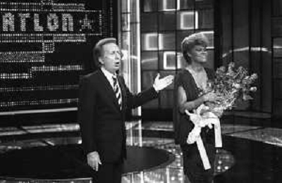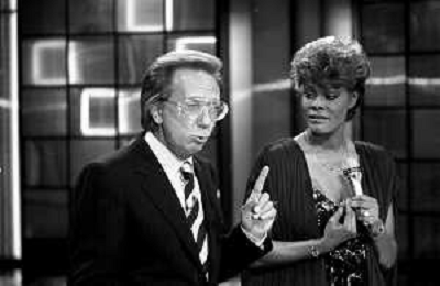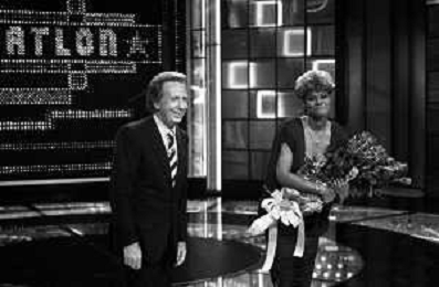 NEG-RETROSPETTIVA DIONNE WARWICK CANTANTE NELLA FOTO DIONNE WARWICK OSPITE DELLA TRASMISSIONE TV PENTATLON A MILANO IL 23 APRILE 1987 CONDOTTA DA MIKE BONGIORNO AGENZIA ALDO LIVERANI SAS