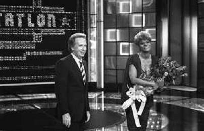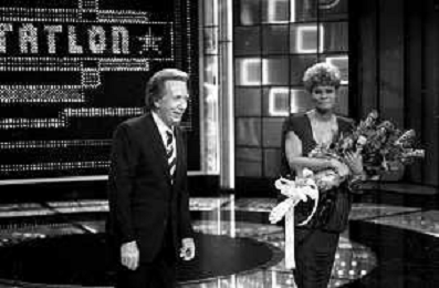 DIA-RETROSPETTIVA DIONNE WARWICK CANTANTE NELLA FOTO DIONNE WARWICK OSPITE DELLA TRASMISSIONE TV PENTATLON A MILANO IL 23 APRILE 1987 CONDOTTA DA MIKE BONGIORNO AGENZIA ALDO LIVERANI SAS