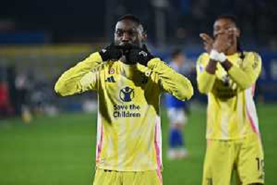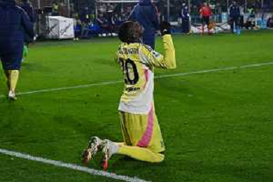 Como vs Juventus nella foto Randal Kolo Muani (Juventus) segna il gol del 2 a 1 Como 07-02-2025 Stadio Giuseppe Sinigaglia Campionato Serie A Enilive - 24a giornata foto Roberto Garavaglia/Agenzia Aldo Liverani sas