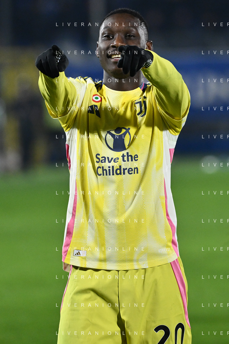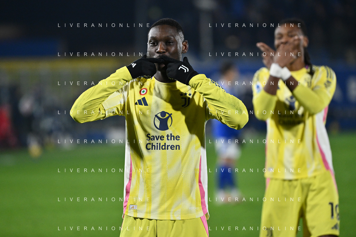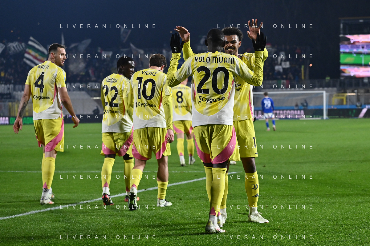 Como vs Juventus nella foto Randal Kolo Muani (Juventus) esultanza dopo il gol del 2 a 1 Como 07-02-2025 Stadio Giuseppe Sinigaglia Campionato Serie A Enilive - 24a giornata foto Roberto Garavaglia/Agenzia Aldo Liverani sas