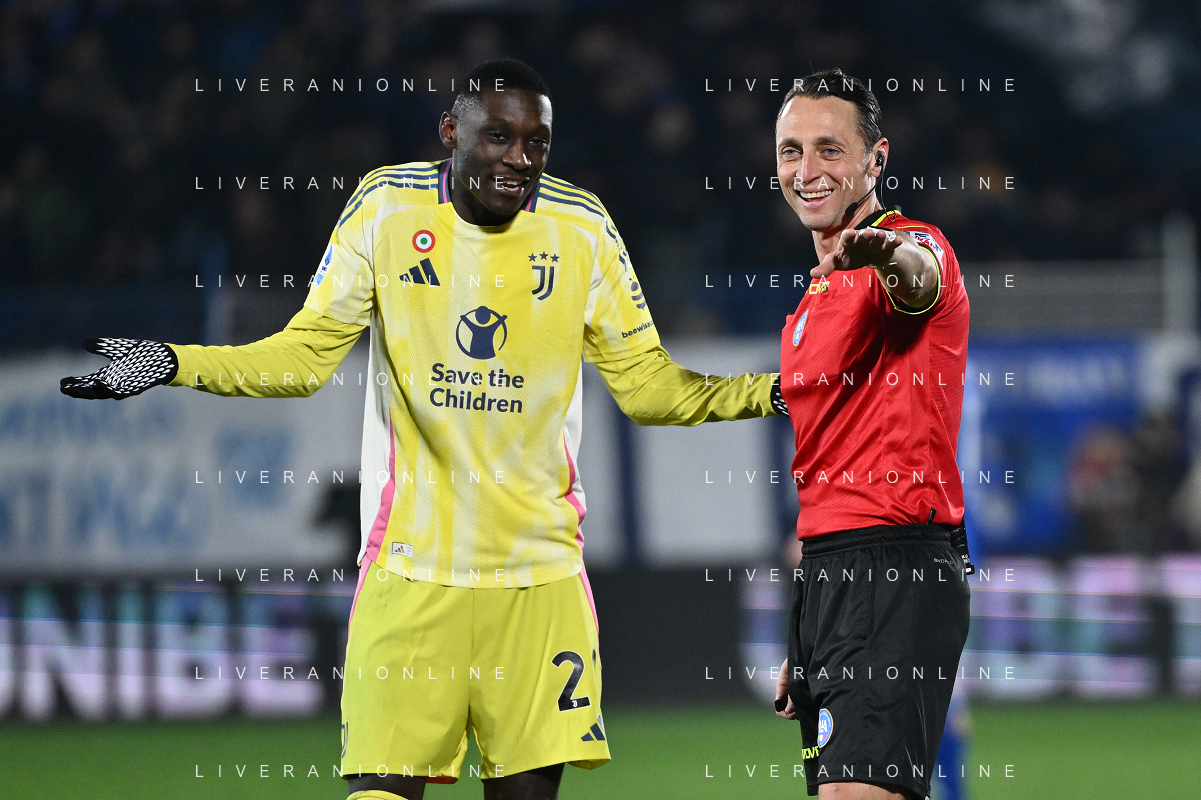 Como vs Juventus nella foto Randal Kolo Muani (Juventus) e l'arbitro Rosario Abisso di Palermo Como 07-02-2025 Stadio Giuseppe Sinigaglia Campionato Serie A Enilive - 24a giornata foto Roberto Garavaglia/Agenzia Aldo Liverani sas