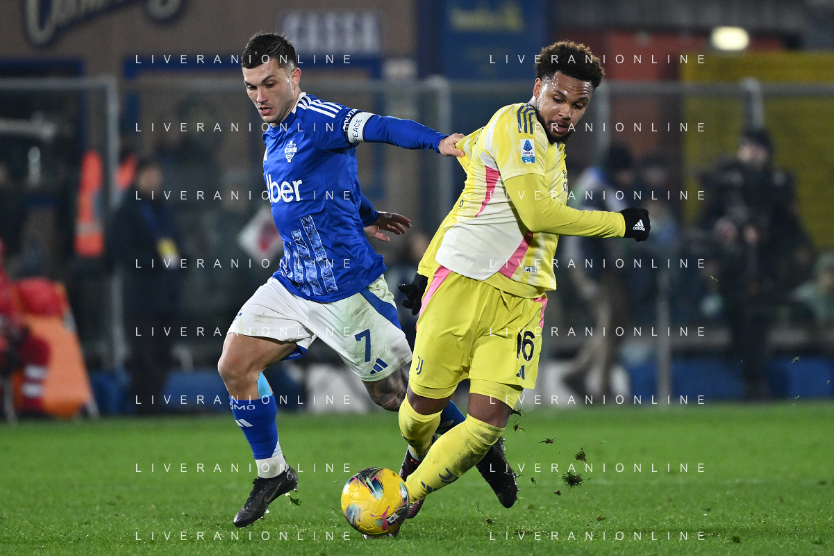 Como vs Juventus nella foto Gabriel Strefezza (Como) e Weston McKennie (Juventus) Como 07-02-2025 Stadio Giuseppe Sinigaglia Campionato Serie A Enilive - 24a giornata foto Roberto Garavaglia/Agenzia Aldo Liverani sas