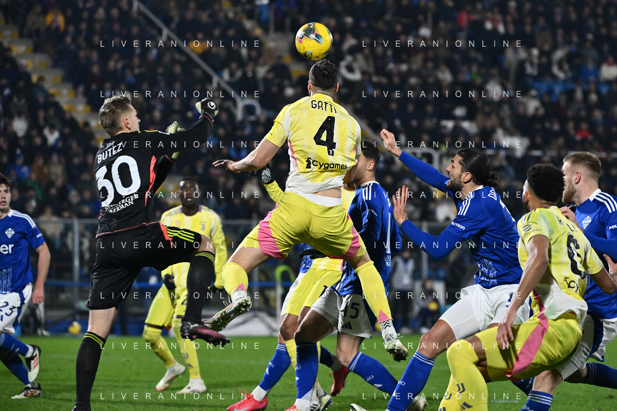 Como vs Juventus nella foto Federico Gatti (Juventus) cerca il gol su colpo di testa Como 07-02-2025 Stadio Giuseppe Sinigaglia Campionato Serie A Enilive - 24a giornata foto Roberto Garavaglia/Agenzia Aldo Liverani sas