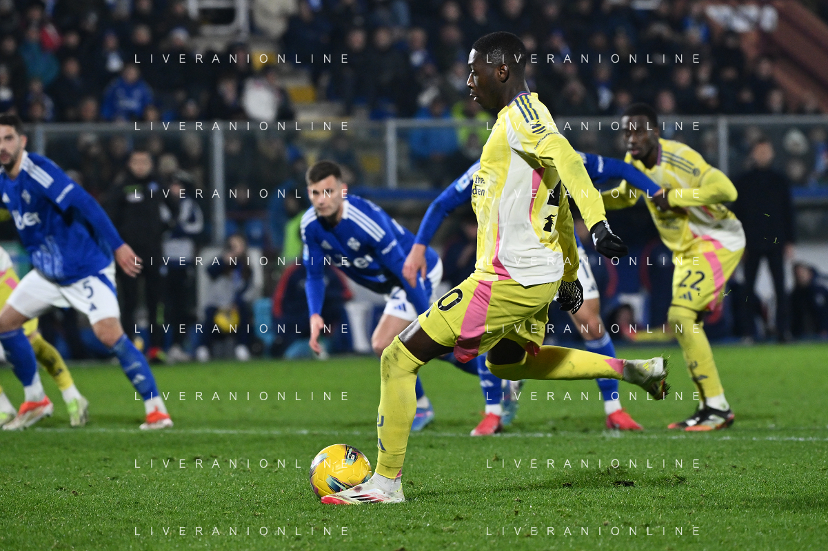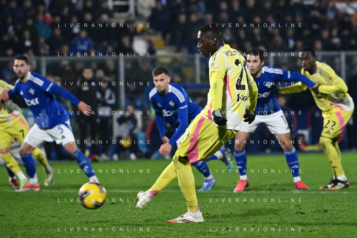 Como vs Juventus nella foto Randal Kolo Muani (Juventus) si appresta a calciare il rigore Como 07-02-2025 Stadio Giuseppe Sinigaglia Campionato Serie A Enilive - 24a giornata foto Roberto Garavaglia/Agenzia Aldo Liverani sas