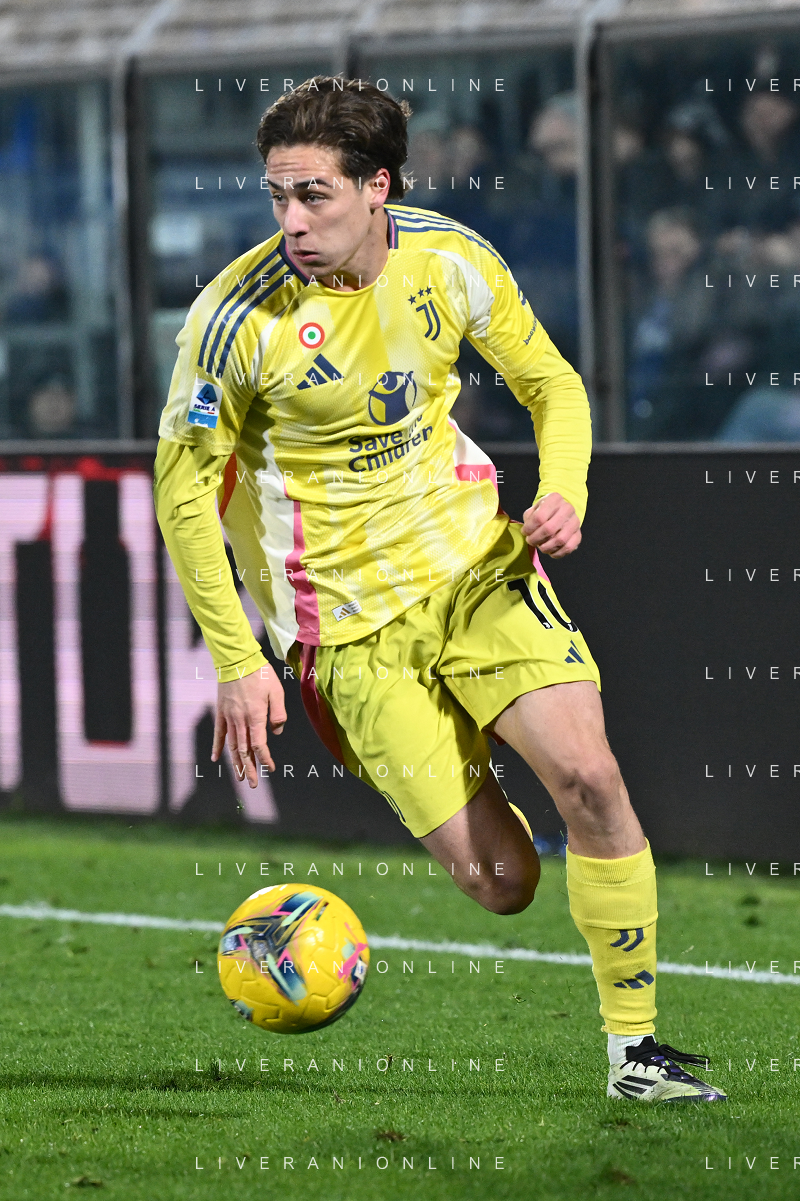 Como vs Juventus nella foto Kenan Yildiz (Juventus) e dietro Nicolò Savona (Juventus) Como 07-02-2025 Stadio Giuseppe Sinigaglia Campionato Serie A Enilive - 24a giornata foto Roberto Garavaglia/Agenzia Aldo Liverani sas