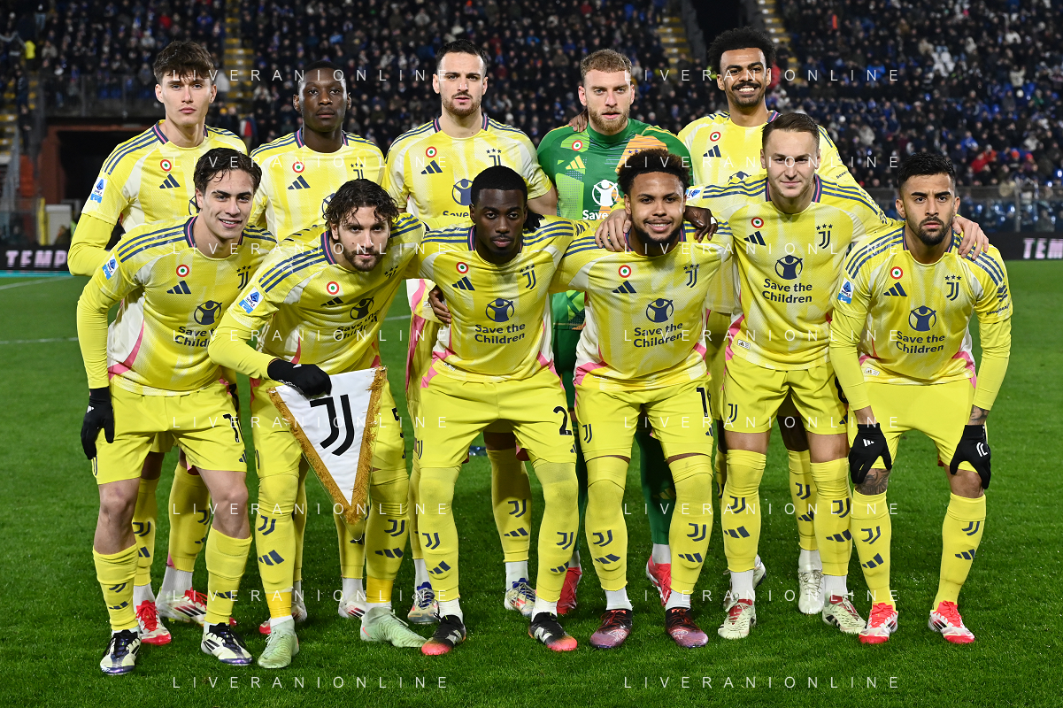 Como vs Juventus nella foto formazione Juventus, in piedi da SX Nicolò Savona, Randal Kolo Muani, Federico Gatti, Michele Di Gregorio e Renato da Palma Veiga; in basso da SX Kenan Yildiz, Manuel Locatelli, Timothy Weah, Weston McKennie, Teun Koopmeiners e Nicolas Gonzalez Como 07-02-2025 Stadio Giuseppe Sinigaglia Campionato Serie A Enilive - 24a giornata foto Roberto Garavaglia/Agenzia Aldo Liverani sas