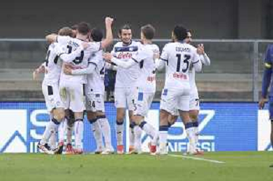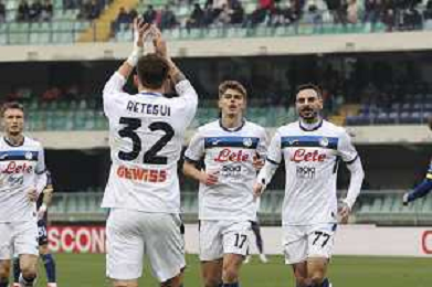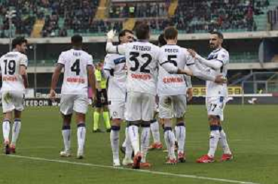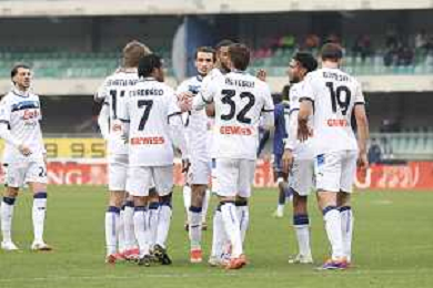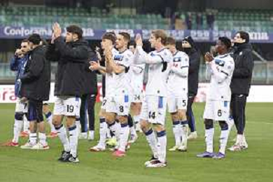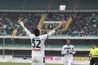 Atalanta BC players applaud the fans following the final whistle during Hellas Verona FC vs Atalanta BC, 24° Serie A Enilive 2024-25 game at Marcantonio Bentegodi stadium in Verona (VR), Italy, on February 08, 2025. (Photo by Davide Casentini) AG ALDO LIVERANI SAS
