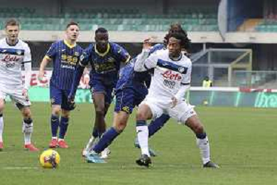 Juan Cuadrado of Atalanta BC play the ball during Hellas Verona FC vs Atalanta BC, 24° Serie A Enilive 2024-25 game at Marcantonio Bentegodi stadium in Verona (VR), Italy, on February 08, 2025. (Photo by Davide Casentini) AG ALDO LIVERANI SAS