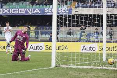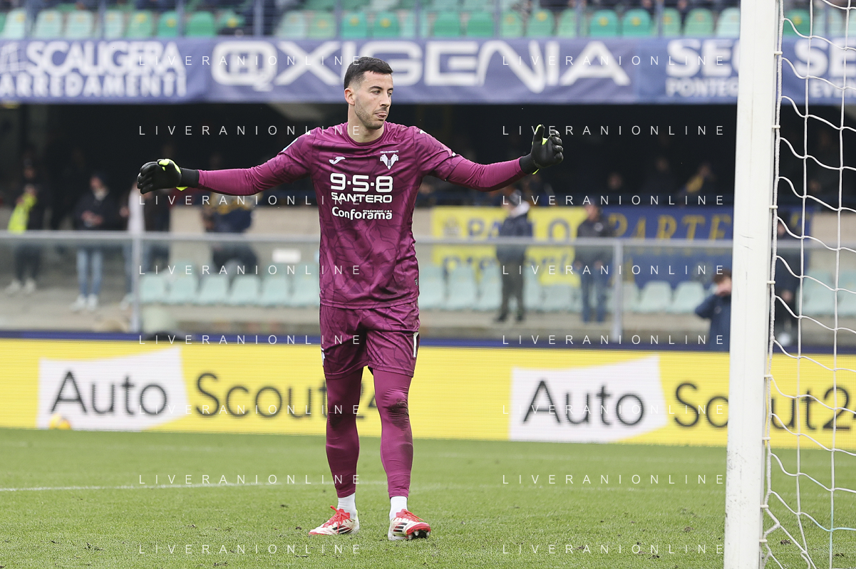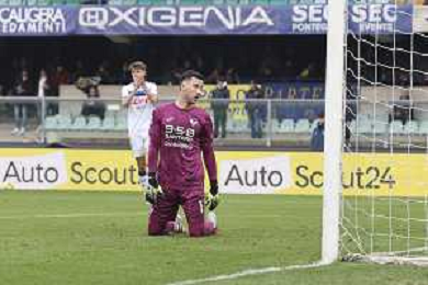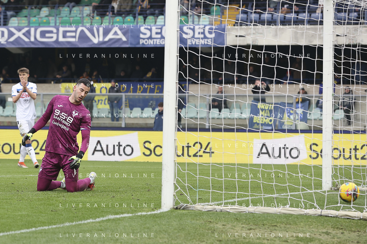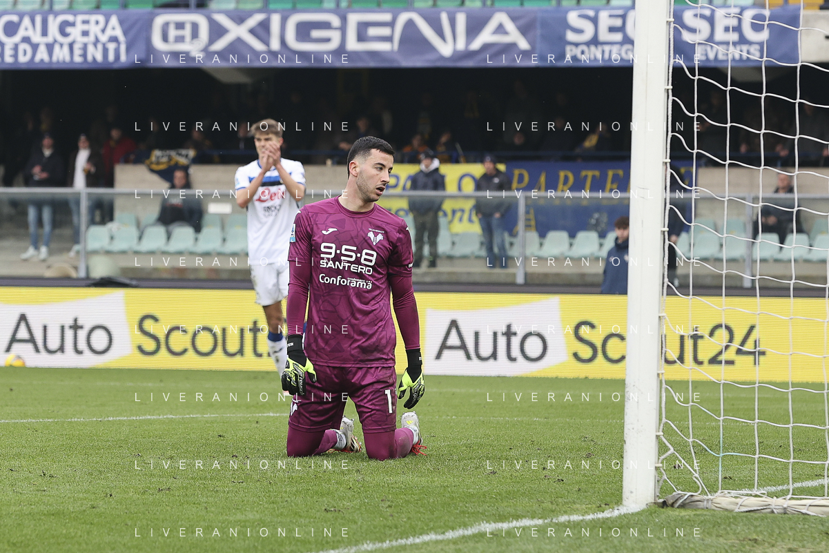 Lorenzo Montipò of Hellas Verona FC expresses disappointment after Josè Dos Santos Ederson of Atalanta BC goal during Hellas Verona FC vs Atalanta BC, 24° Serie A Enilive 2024-25 game at Marcantonio Bentegodi stadium in Verona (VR), Italy, on February 08, 2025. (Photo by Davide Casentini) AG ALDO LIVERANI SAS