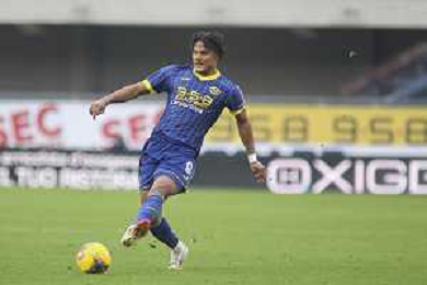 Daniel Mosquera of Hellas Verona FC play the ball during Hellas Verona FC vs Atalanta BC, 24° Serie A Enilive 2024-25 game at Marcantonio Bentegodi stadium in Verona (VR), Italy, on February 08, 2025. (Photo by Davide Casentini) AG ALDO LIVERANI SAS