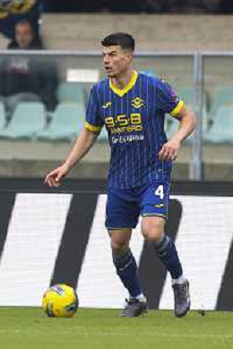 Flavius Daniliuc of Hellas Verona play the ball during Hellas Verona FC vs Atalanta BC, 24° Serie A Enilive 2024-25 game at Marcantonio Bentegodi stadium in Verona (VR), Italy, on February 08, 2025. (Photo by Davide Casentini) AG ALDO LIVERANI SAS