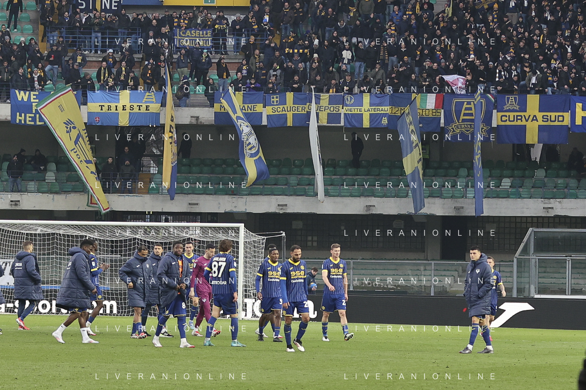 Hellas Verona players expresses disappointment at the end of Hellas Verona FC vs Atalanta BC, 24° Serie A Enilive 2024-25 game at Marcantonio Bentegodi stadium in Verona (VR), Italy, on February 08, 2025. (Photo by Davide Casentini) AG ALDO LIVERANI SAS