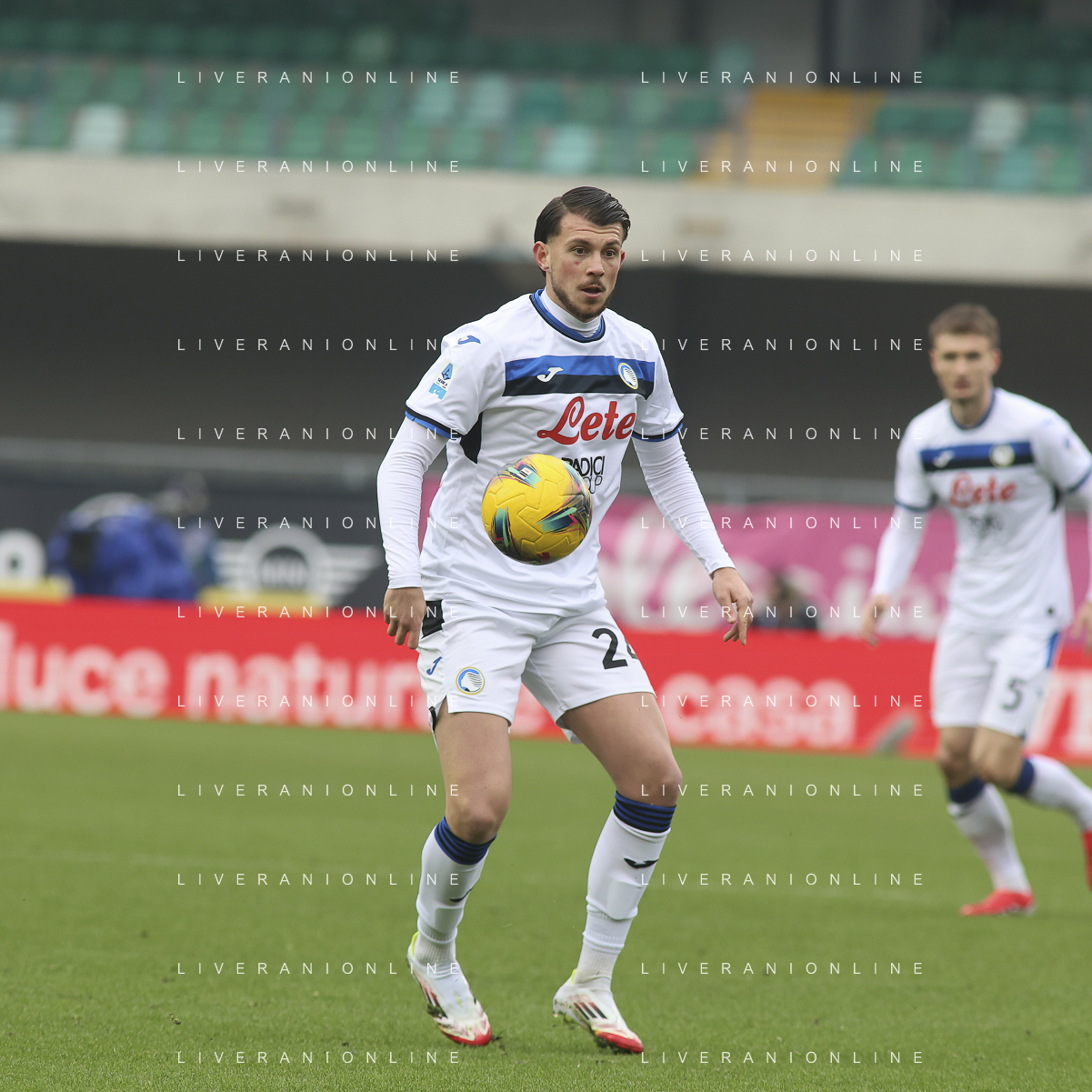 Stefan Posch of Atalanta FC play the ball during Hellas Verona FC vs Atalanta BC, 24° Serie A Enilive 2024-25 game at Marcantonio Bentegodi stadium in Verona (VR), Italy, on February 08, 2025. (Photo by Davide Casentini) AG ALDO LIVERANI SAS
