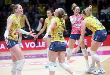 CASALECCHIO DI RENO (BOLOGNA) 08 02 2025 COPPA ITALIA DI PALLAVOLO FEMMINILE PRIMA SEMIFINALE IMOCO CONEGLIANO-IGOR NOVARA VOLLEY 3-0 NELLA FOTO IMOCO CONEGLIANO FESTEGGIA LA VITTORIA DOPO LA PARTITA FOTO GIANNI SANNA-AG ALDO LIVERANI SAS