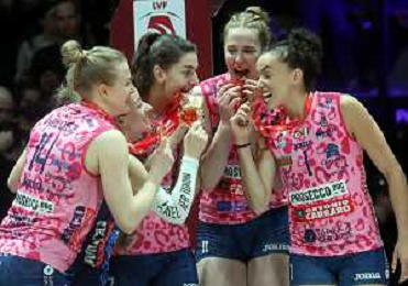 CASALECCHIO DI RENO(BOLOGNA) 09 02 2025 FINALI COPPA ITALIA FEMMINILE PALLAVOLO FRECCIAROSSA FINALE PROSECCO DOC IMOCO CONEGLIANO-NUMIA VERO VOLLEY MILANO 3-0 NELLA FOTO IMOCO CONEGLIANO FESTEGGIA LA VITTORIA DOPO LA PARTITA FOTO GIANNI SANNA-AG ALDO LIVERANI SAS