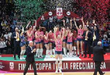 CASALECCHIO DI RENO(BOLOGNA) 09 02 2025 FINALI COPPA ITALIA FEMMINILE PALLAVOLO FRECCIAROSSA FINALE PROSECCO DOC IMOCO CONEGLIANO-NUMIA VERO VOLLEY MILANO 3-0 NELLA FOTO VINCITRICE A1 CONEGLIANO E VINCITRICE A2 SAN GIOVANNI IN MARIGNANO FOTO GIANNI SANNA-AG ALDO LIVERANI SAS