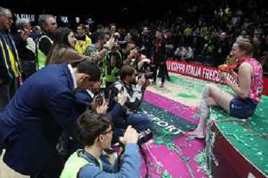 CASALECCHIO DI RENO (BOLOGNA) FINALI COPPA ITALIA FRECCIAROSSA FINALE PROSECCO DOC IMOCO CONEGLIANO-NUMIA VERO VOLLEY MILANO 3-0 NELLA FOTO ISABELLE HAAH MVP DELLAPARTITA CON I FOTOGRAFI FOTO GIANNI SANNA-AG ALDO LIVERANI SAS