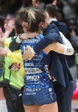 CASALECCHIO DI RENO(BOLOGNA) 09 02 2025 FINALI COPPA ITALIA FEMMINILE PALLAVOLO FRECCIAROSSA FINALE PROSECCO DOC IMOCO CONEGLIANO-NUMIA VERO VOLLEY MILANO 3-0 NELLA FOTO DANIELE SANTARELLI ALLENATORE IMOCO CONEGLIANO E MONICA DE GENNARO DOPO LA PARTITA FOTO GIANNI SANNA-AG ALDO LIVERANI SAS
