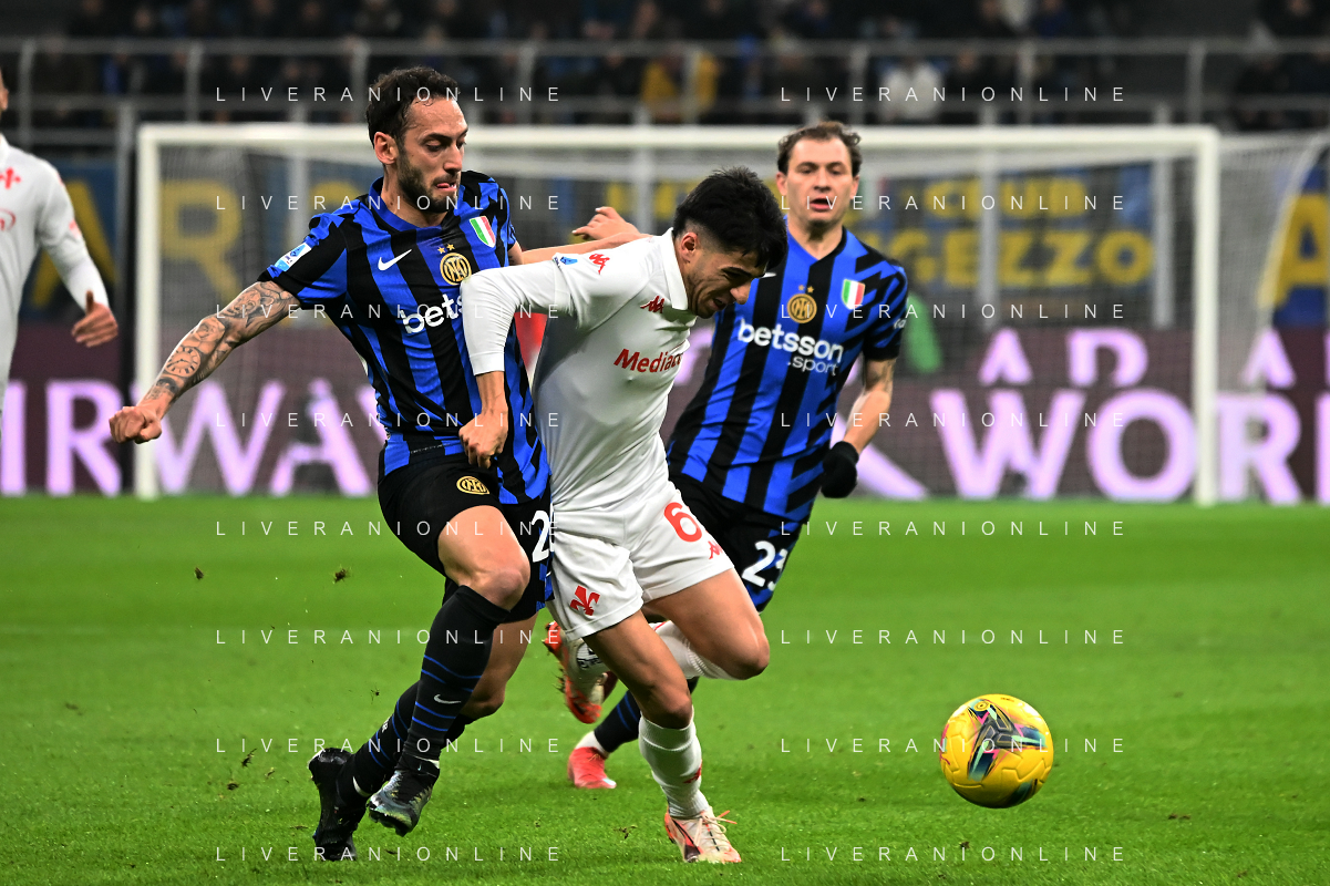 Serie A 2024-2025 21’ Giornata Fc Internazionale vs Ac Fiorentina 10/2/2025 Nella foto: Fabiano Parisi e Hakan Chalanoglu Foto Andrea Rosito-Agenzia Liverani Sas