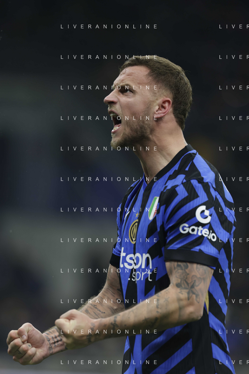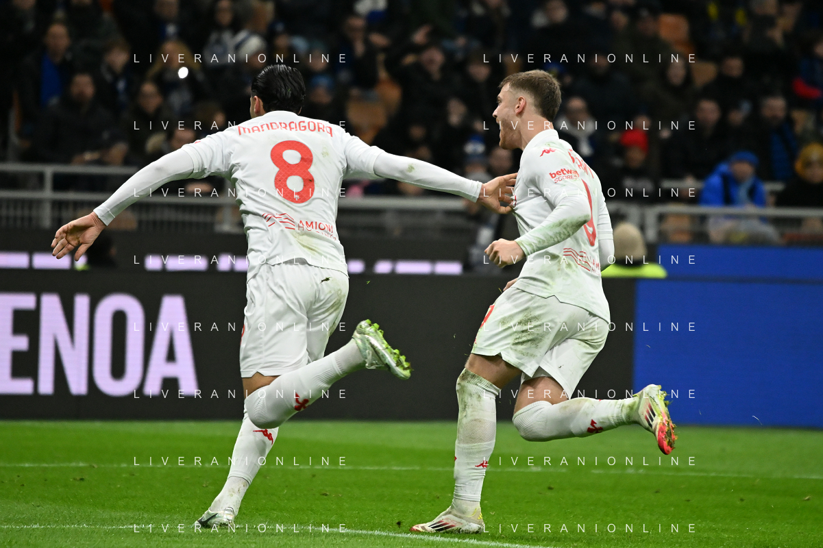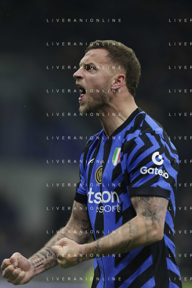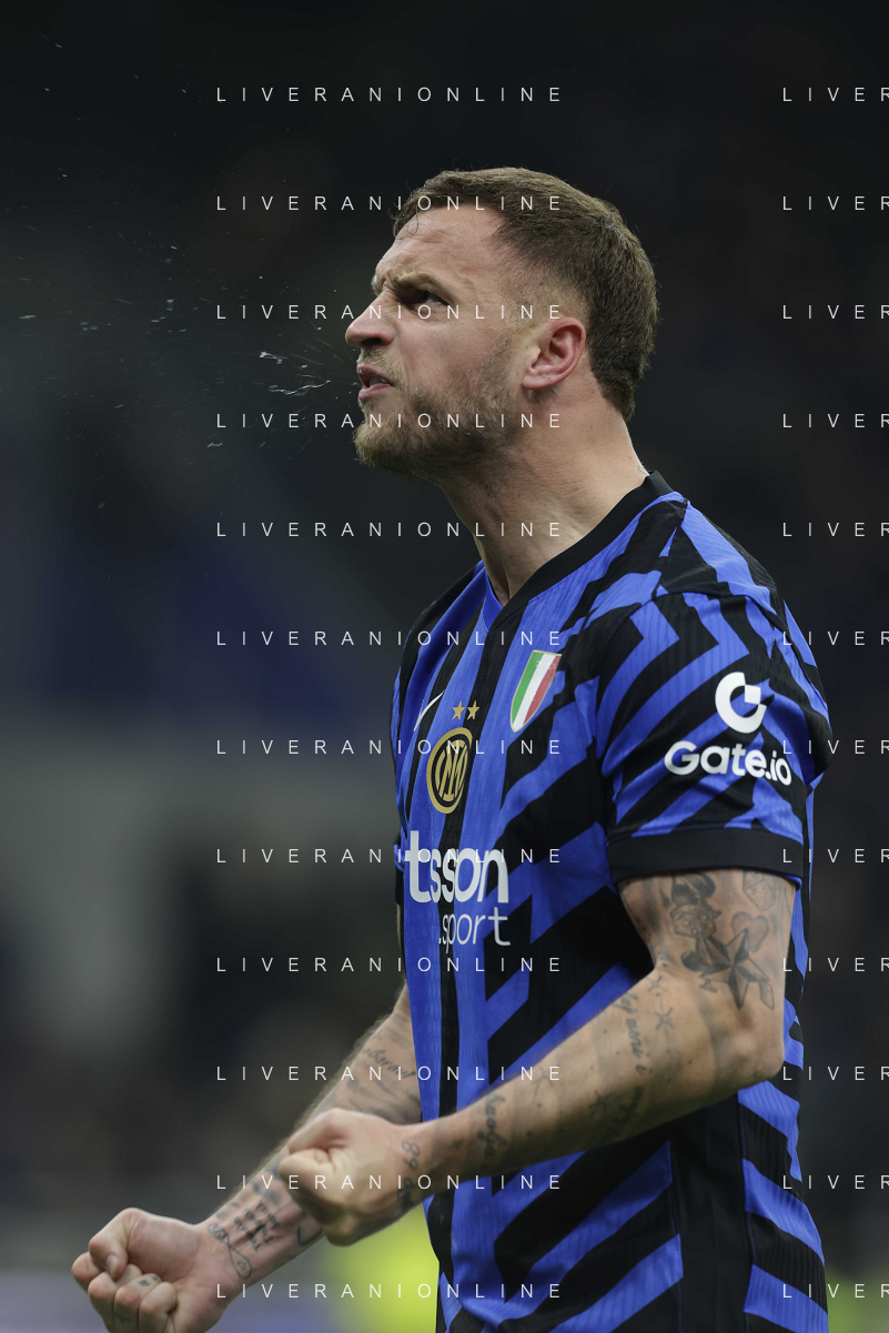 Serie A 2024-2025 21’ Giornata Fc Internazionale vs Ac Fiorentina 19/2/2025 Nella foto: Arnautovic e Lautaro festa gol Foto Andrea Rosito-Agenzia Liverani Sas