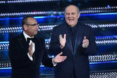 Festival Sanremo 2025 nella foto Carlo Conti e Jerry Scotti 75mo Festival della Canzone Italiana - Prima Serata Teatro Ariston - Sanremo (IM) 11-02-2025 foto Roberto Garavaglia/agenzia Aldo Liverani sas