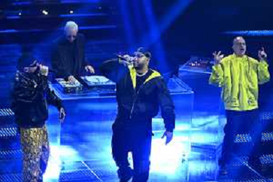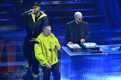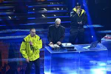 Festival Sanremo 2025 nella foto Shablo con Guè, Joshua e Tormento 75mo Festival della Canzone Italiana - Prima Serata Teatro Ariston - Sanremo (IM) 11-02-2025 foto Roberto Garavaglia/agenzia Aldo Liverani sas