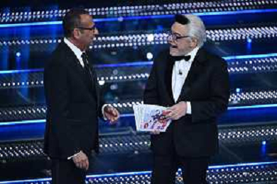 Festival Sanremo 2025 nella foto Carlo Conti e Cristiano Malgioglio 75mo Festival della Canzone Italiana - Seconda Serata Teatro Ariston - Sanremo (IM) 12-02-2025 foto Roberto Garavaglia/agenzia Aldo Liverani sas