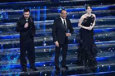 Festival Sanremo 2025 nella foto da SX Edoardo Leo, Carlo Conti e Pilar Fogliati 75mo Festival della Canzone Italiana - Seconda Serata Teatro Ariston - Sanremo (IM) 12-02-2025 foto Roberto Garavaglia/agenzia Aldo Liverani sas