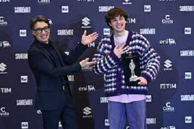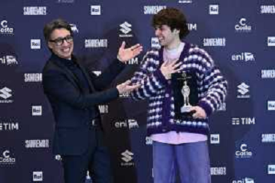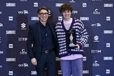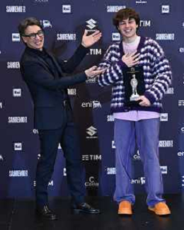 Festival Sanremo 2025 nella foto Paolo Jannacci SX consegna il premio Jannacci a Settembre DX 75mo Festival della Canzone Italiana photocall del 13 febbraio Teatro Ariston - Sanremo (IM) 13-02-2025 foto Roberto Garavaglia/agenzia Aldo Liverani sas