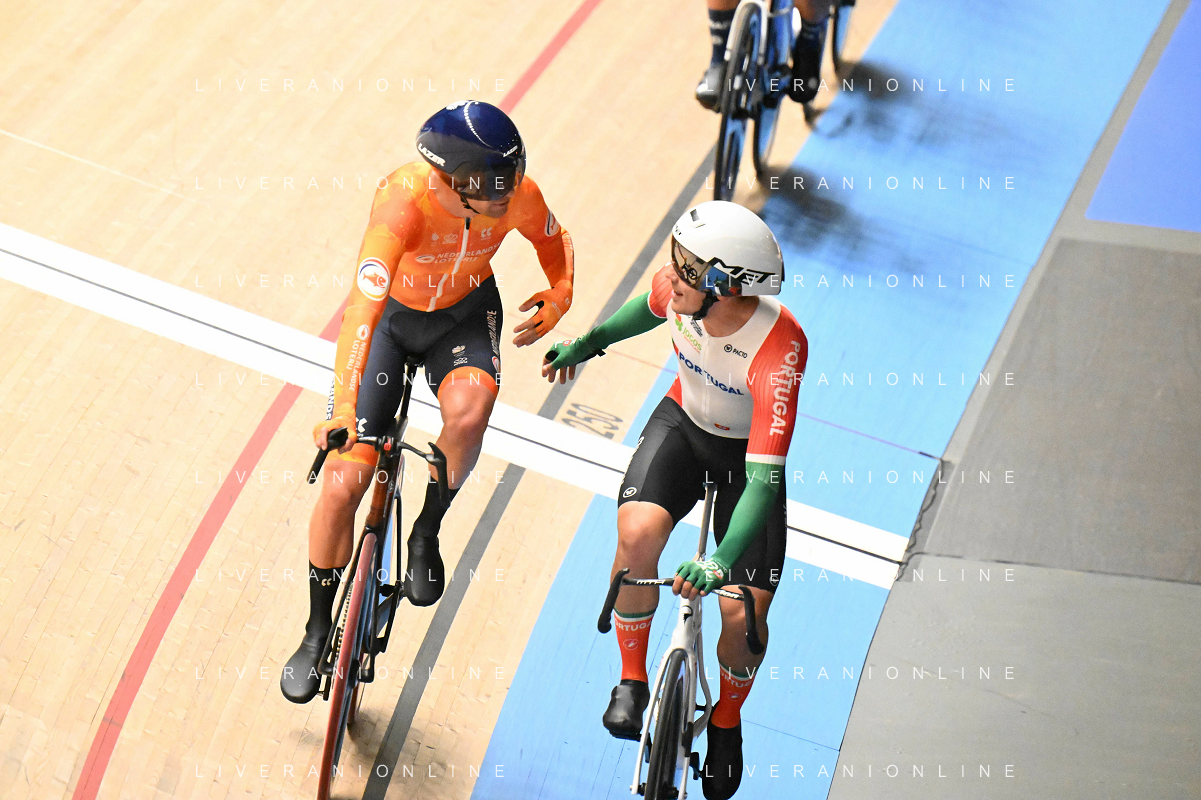 14-02-2025 European Championships Elite Track; Giornata 03; 2025, Portogallo; 2025, Olanda; Leitao, Iuri; Hoppezak, Vincent; Zolder Velodromo; ©SIROTTI - AGENZIA ALDO LIVERANI SAS