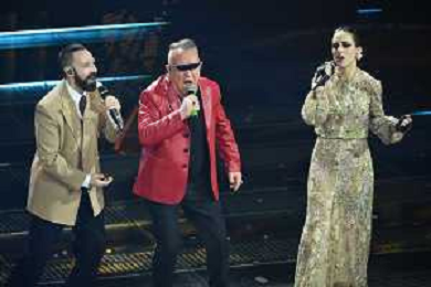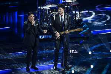 Festival Sanremo 2025 nella foto Coma Cose con Johnson Righeira 75mo Festival della Canzone Italiana - Quarta Serata Teatro Ariston - Sanremo (IM) 14-02-2025 foto Roberto Garavaglia/agenzia Aldo Liverani sas