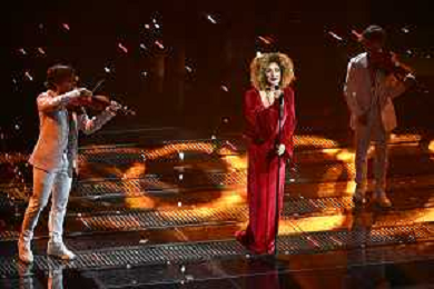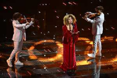 Festival Sanremo 2025 nella foto Marcella Bella con i Twin Violins 75mo Festival della Canzone Italiana - Quarta Serata Teatro Ariston - Sanremo (IM) 14-02-2025 foto Roberto Garavaglia/agenzia Aldo Liverani sas