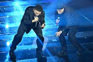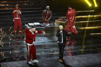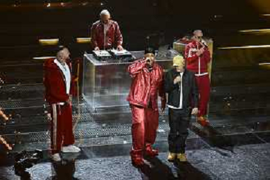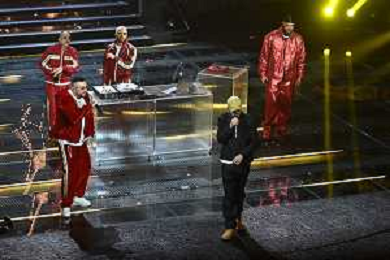 Festival Sanremo 2025 nella foto Shablo con Guè, Joshua e Tormento con Neffa 75mo Festival della Canzone Italiana - Quarta Serata Teatro Ariston - Sanremo (IM) 14-02-2025 foto Roberto Garavaglia/agenzia Aldo Liverani sas