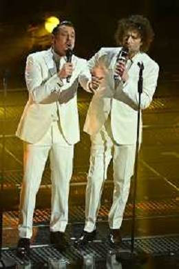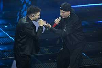 Festival Sanremo 2025 nella foto Rocco Hunt SX con Clementino DX 75mo Festival della Canzone Italiana - Quarta Serata Teatro Ariston - Sanremo (IM) 14-02-2025 foto Roberto Garavaglia/agenzia Aldo Liverani sas