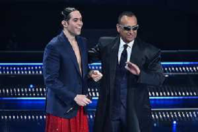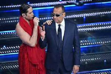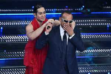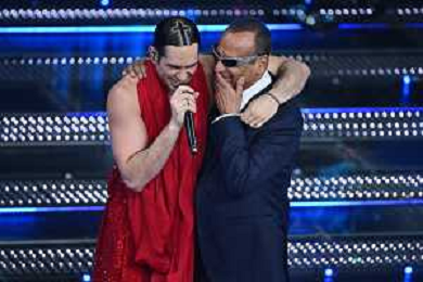 Festival Sanremo 2025 nella foto Mahmood e Carlo Conti 75mo Festival della Canzone Italiana - Quarta Serata Teatro Ariston - Sanremo (IM) 14-02-2025 foto Roberto Garavaglia/agenzia Aldo Liverani sas