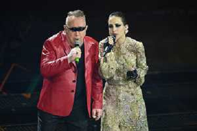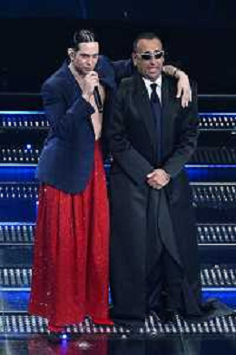 Festival Sanremo 2025 nella foto Elodie con Achille Lauro 75mo Festival della Canzone Italiana - Quarta Serata Teatro Ariston - Sanremo (IM) 14-02-2025 foto Roberto Garavaglia/agenzia Aldo Liverani sas