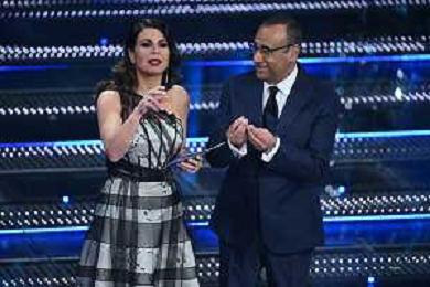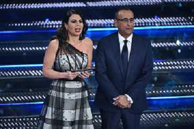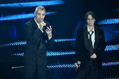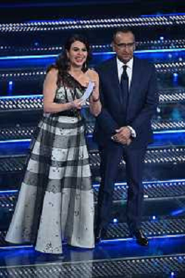 Festival Sanremo 2025 nella foto Geppi Cucciari e Carlo Conti 75mo Festival della Canzone Italiana - Quarta Serata Teatro Ariston - Sanremo (IM) 14-02-2025 foto Roberto Garavaglia/agenzia Aldo Liverani sas