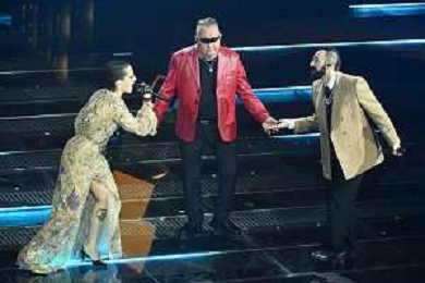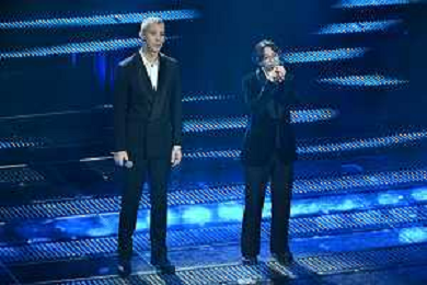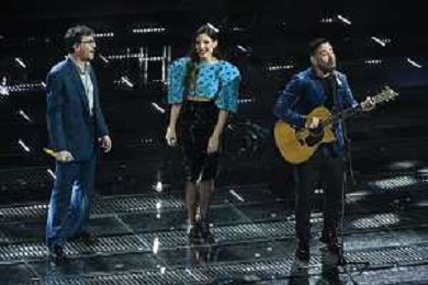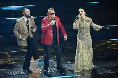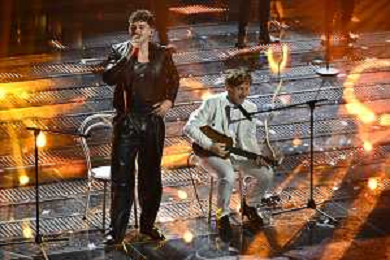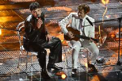 Festival Sanremo 2025 nella foto The Kolors, Antonio Stash Fiordispino DX, con Sal Da Vinci 75mo Festival della Canzone Italiana - Quarta Serata Teatro Ariston - Sanremo (IM) 14-02-2025 foto Roberto Garavaglia/agenzia Aldo Liverani sas