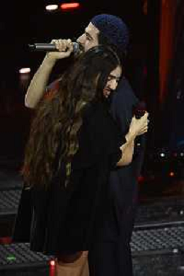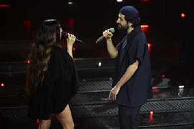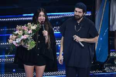 Festival Sanremo 2025 nella foto Sarah Toscano con gli Ofenbach 75mo Festival della Canzone Italiana - Quarta Serata Teatro Ariston - Sanremo (IM) 14-02-2025 foto Roberto Garavaglia/agenzia Aldo Liverani sas