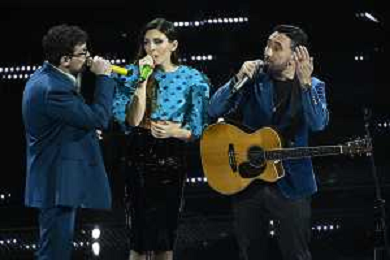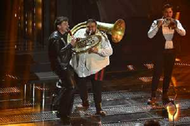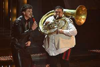 Festival Sanremo 2025 nella foto Olly con Goran Bregovic e la Wedding and Funeral Band 75mo Festival della Canzone Italiana - Quarta Serata Teatro Ariston - Sanremo (IM) 14-02-2025 foto Roberto Garavaglia/agenzia Aldo Liverani sas