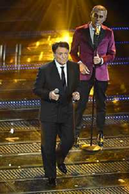 Festival Sanremo 2025 nella foto Massimo Ranieri con I Neri per Caso 75mo Festival della Canzone Italiana - Quarta Serata Teatro Ariston - Sanremo (IM) 14-02-2025 foto Roberto Garavaglia/agenzia Aldo Liverani sas