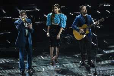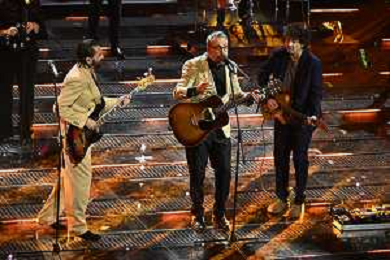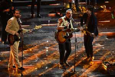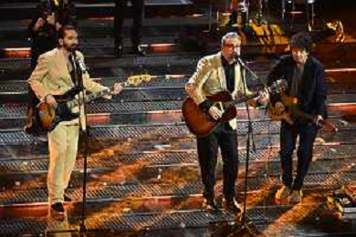 Festival Sanremo 2025 nella foto Brunori Sas con Riccardo Senigallia DX e Dimartino SX 75mo Festival della Canzone Italiana - Quarta Serata Teatro Ariston - Sanremo (IM) 14-02-2025 foto Roberto Garavaglia/agenzia Aldo Liverani sas