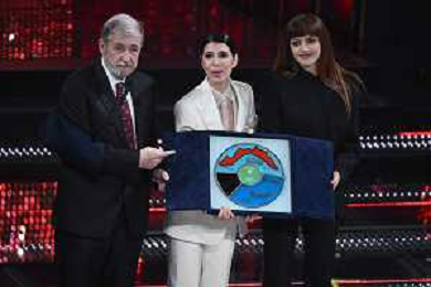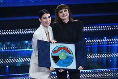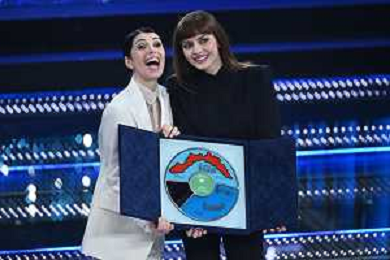 Festival Sanremo 2025 nella foto Giorgia e Annalisa vincono la serata delle cover, a SX Marco Bucci presidente Regione Liguria 75mo Festival della Canzone Italiana - Quarta Serata Teatro Ariston - Sanremo (IM) 14-02-2025 foto Roberto Garavaglia/agenzia Aldo Liverani sas