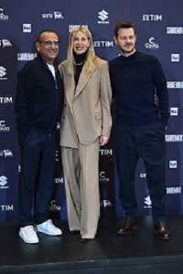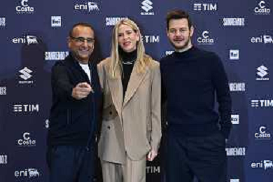 Festival Sanremo 2025 nella foto da SX Carlo Conti, Alessia Marcuzzi e Alessandro Cattelan 75mo Festival della Canzone Italiana photocall del 15 febbraio Teatro Ariston - Sanremo (IM) 15-02-2025 foto Roberto Garavaglia/agenzia Aldo Liverani sas