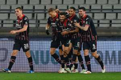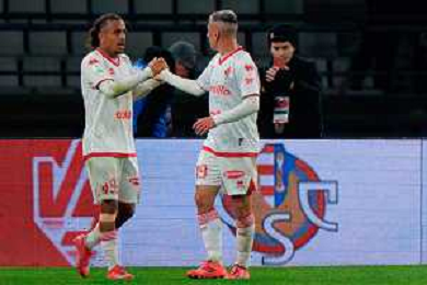TVEM February 15, 2025 Bari, Italy - SSC Bari vs US Cremonese - Italian soccer serie B 2024/25 - San Nicola Stadium. In the pic: Mattia Valoti of US Cremonese celebrates after scoring a goal with teammates foto emmanuele mastodonato-ag aldo liverani sas