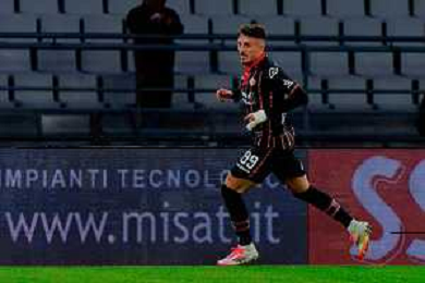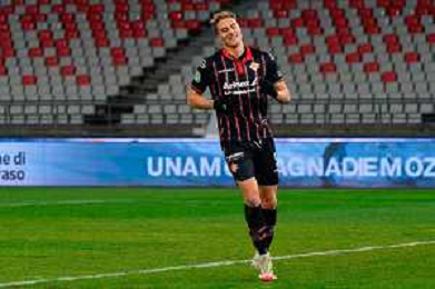 TVEM February 15, 2025 Bari, Italy - SSC Bari vs US Cremonese - Italian soccer serie B 2024/25 - San Nicola Stadium. In the pic: Mattia Valoti of US Cremonese celebrates after scoring a goal foto emmanuele mastodonato-ag aldo liverani sas