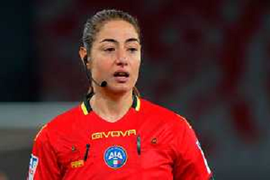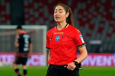 TVEM February 15, 2025 Bari, Italy - SSC Bari vs US Cremonese - Italian soccer serie B 2024/25 - San Nicola Stadium. In the pic: the referee Maria Sole Ferrieri Caputi of Livorno foto emmanuele mastodonato-ag aldo liverani sas