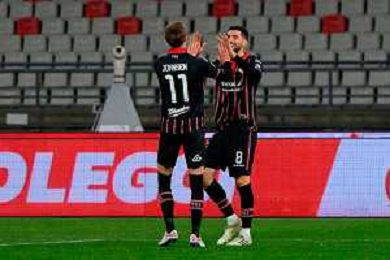 TVEM February 15, 2025 Bari, Italy - SSC Bari vs US Cremonese - Italian soccer serie B 2024/25 - San Nicola Stadium. In the pic: Mehdi Emile Dorval of SSC Bari celebrates with Cesar Falletti of SSC Bari foto emmanuele mastodonato-ag aldo liverani sas