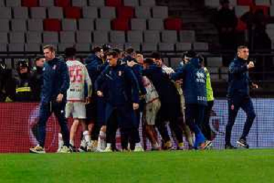 TVEM February 15, 2025 Bari, Italy - SSC Bari vs US Cremonese - Italian soccer serie B 2024/25 - San Nicola Stadium. In the pic: players of US Cremonese celebrates after scoring a goal foto emmanuele mastodonato-ag aldo liverani sas